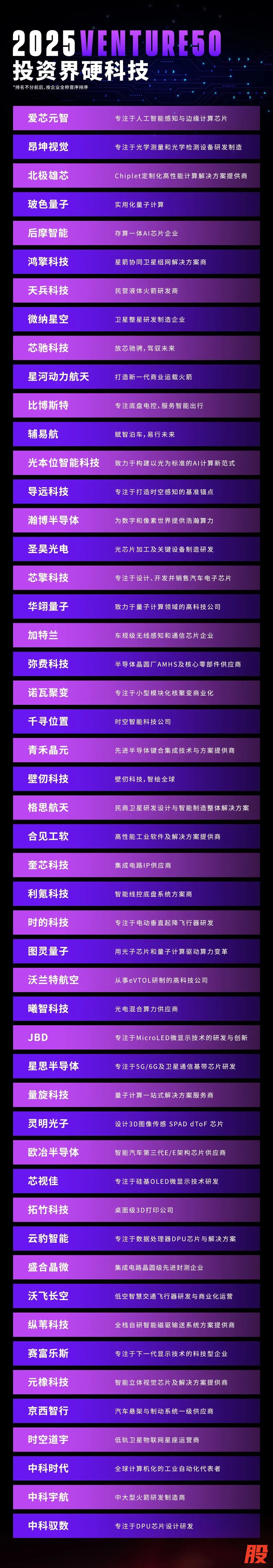 完整2025VENTURE50投资界硬科技榜单: